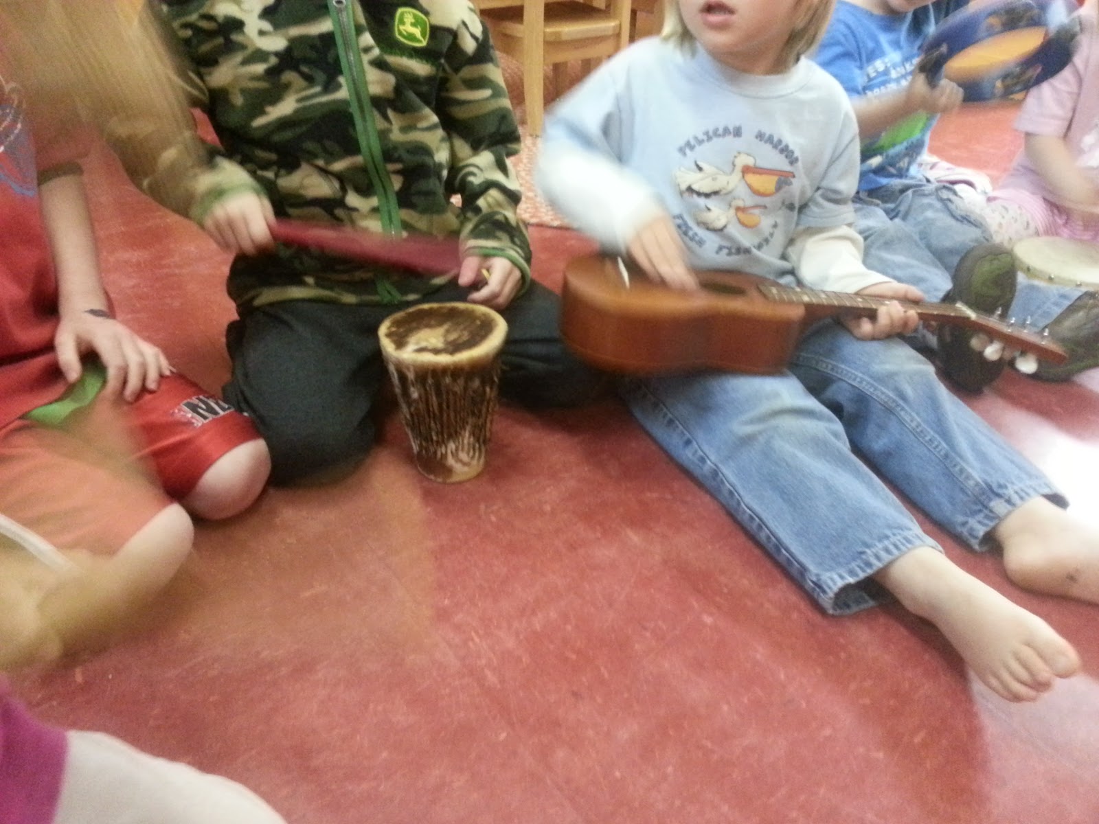 We also made our own band using an accordion, a ukele and percussion instruments.