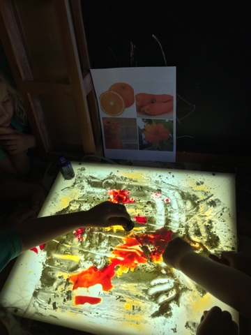 We used the light table to find out for ourselves what color is created when we put red and yellow together.