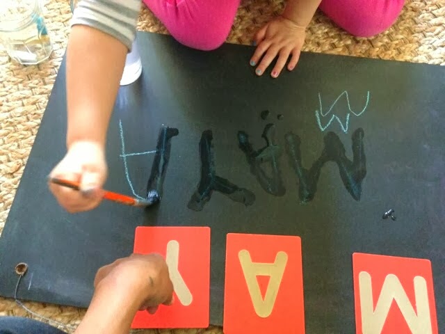 They copied the letters on the chalkboard with chalk and traced over the chalk with water.